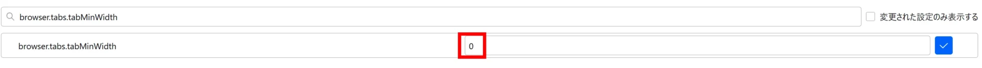 検索ボックスに browser.tabs.tabMinWidth と入力します。