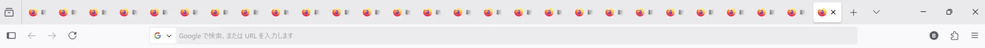 再起動後にタブを大量に開いてみます。下記の例では27個のタブを開いていますが、スクロールの矢印アイコンが表示されず、全てのタブが表示できているることが確認できました。