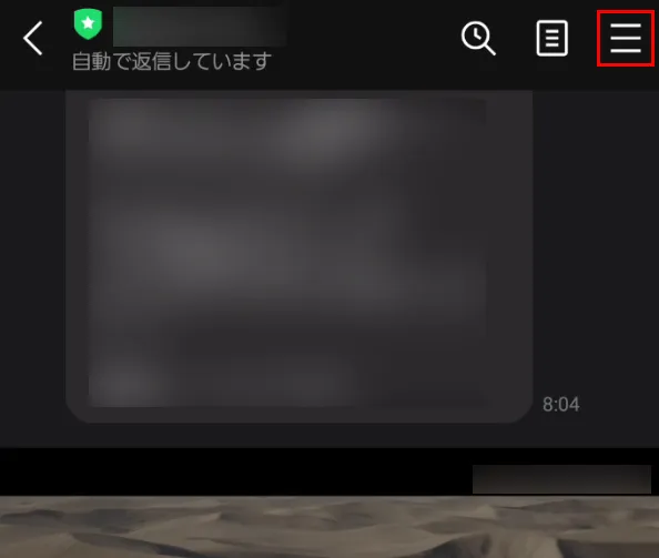 公式アカウントのトーク画面からブロックします。トーク画面を開いて右上のメニューをタップします。