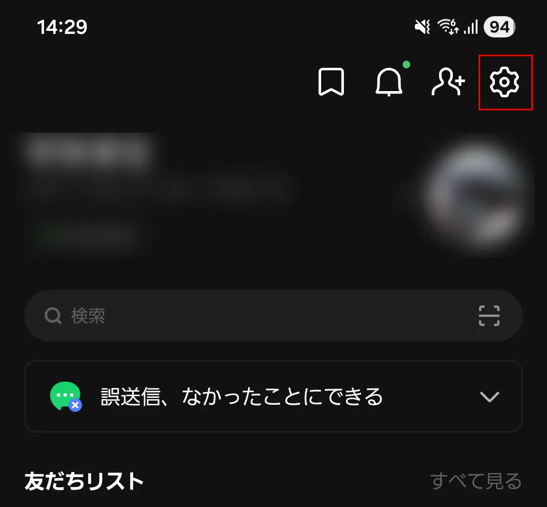 ホームの右上の歯車アイコンをタップして設定に入ります。