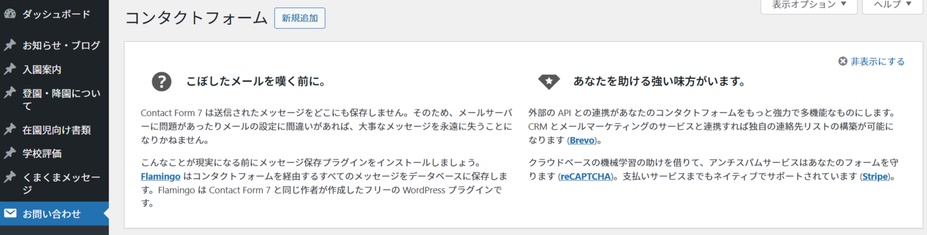 では実際にCF7を使っていきましょう。プラグインをインストールするとこのような画面が表示されます。