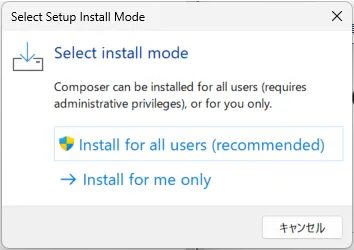 インストーラーをダブルクリックして実行します。インストールするユーザーを任意で選択してください。全てのユーザーか現在使用中のユーザーのみかの二択です。
