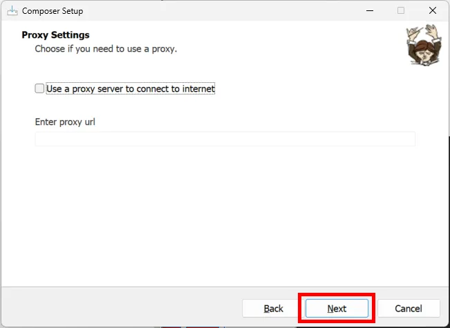 プロキシサーバーの使用について聞かれます。使う場合はチェックを入れてURLを入力します。使わない場合は次に進みます。
